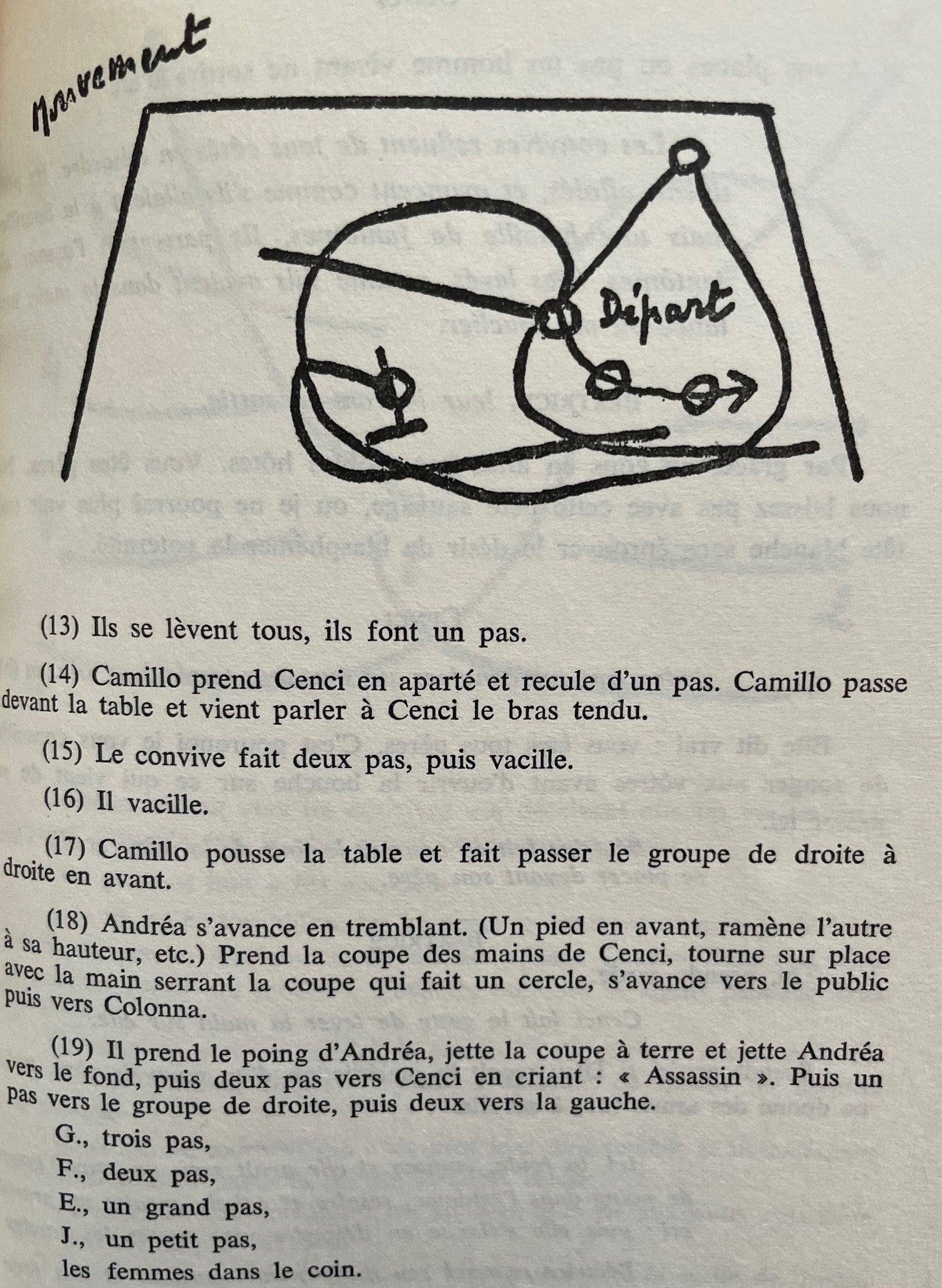 Προσωπική σημείωση του Roger Blin, γραμμένη κατά τις πρόβες των Cenci (1935) από τις υποδείξεις του Artaud, δημοσιευμένη από τους Alain και Odette Virmaux και πιθανότατα στοιχειοθετημένη από τον Valère Novarina.