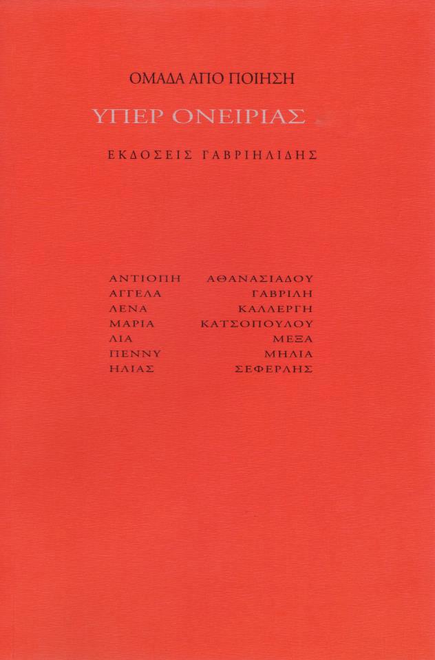 *Από το Ομάδα από Ποιηση ΙΙ, “Υπέρ Ονειρίας”, εκδ. Γαβριηλίδης, 2012.