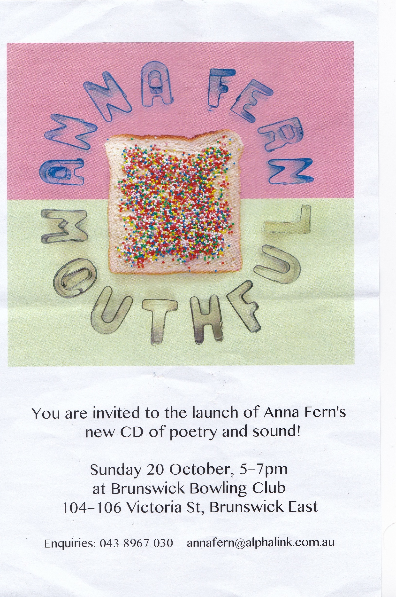 Anna Fern, Mouthful – New cd of poetry and sound Posted by Το κόσκινο on October 7, 2013 Share this: Share on X (Opens in new window) X Share on Facebook (Opens in new window) Facebook Like Loading... Related