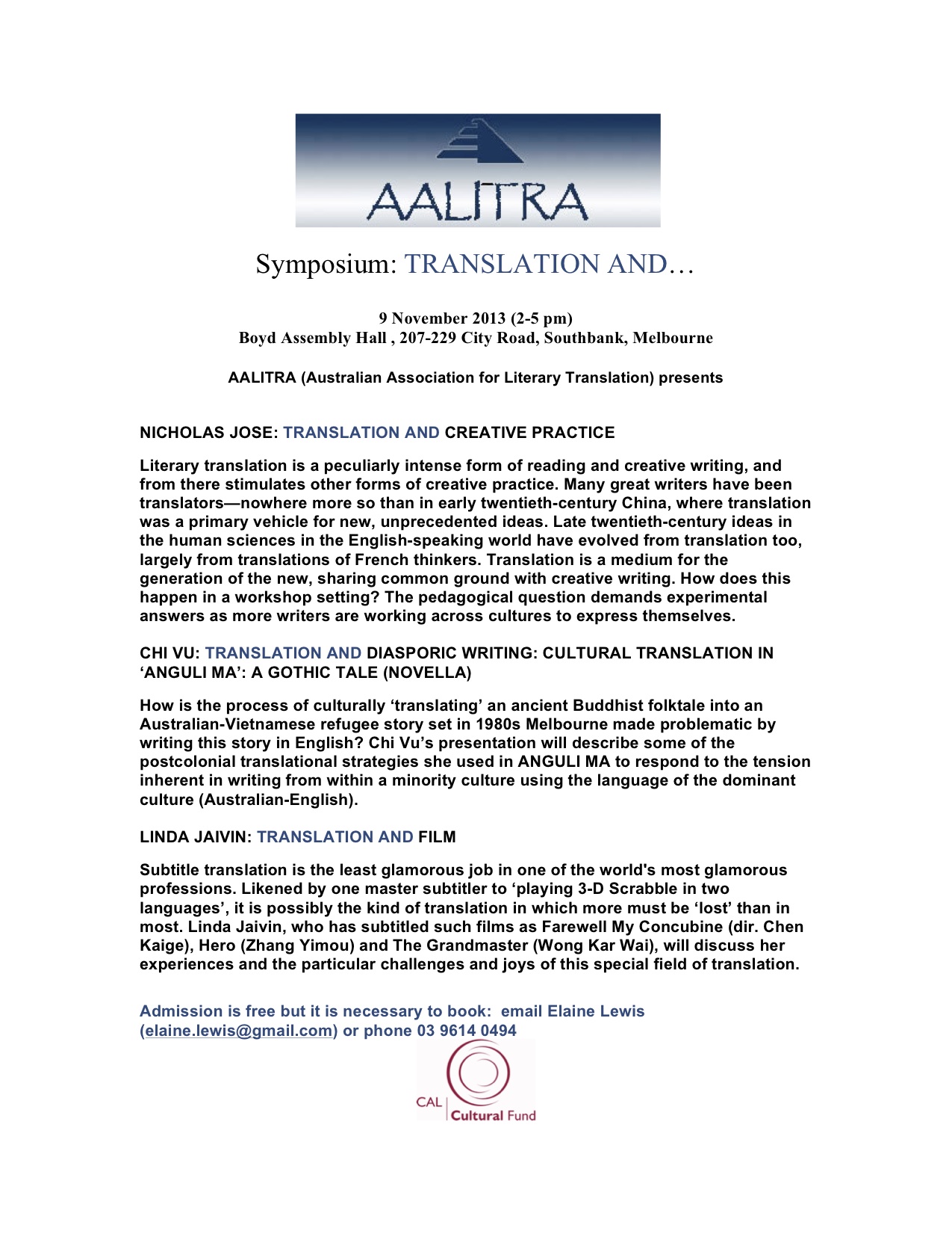 AALITRA Symposium: Translation and… Posted by Το κόσκινο on October 19, 2013 Share this: Share on X (Opens in new window) X Share on Facebook (Opens in new window) Facebook Like Loading... Related