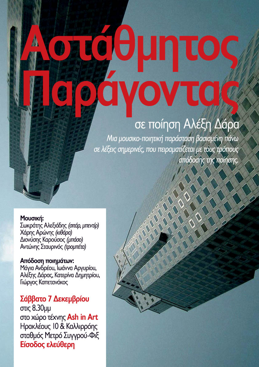 Το Σάββατο 7 Δεκεμβρίου, στις 8.30μμ στο χώρο τέχνης Ash in Art,