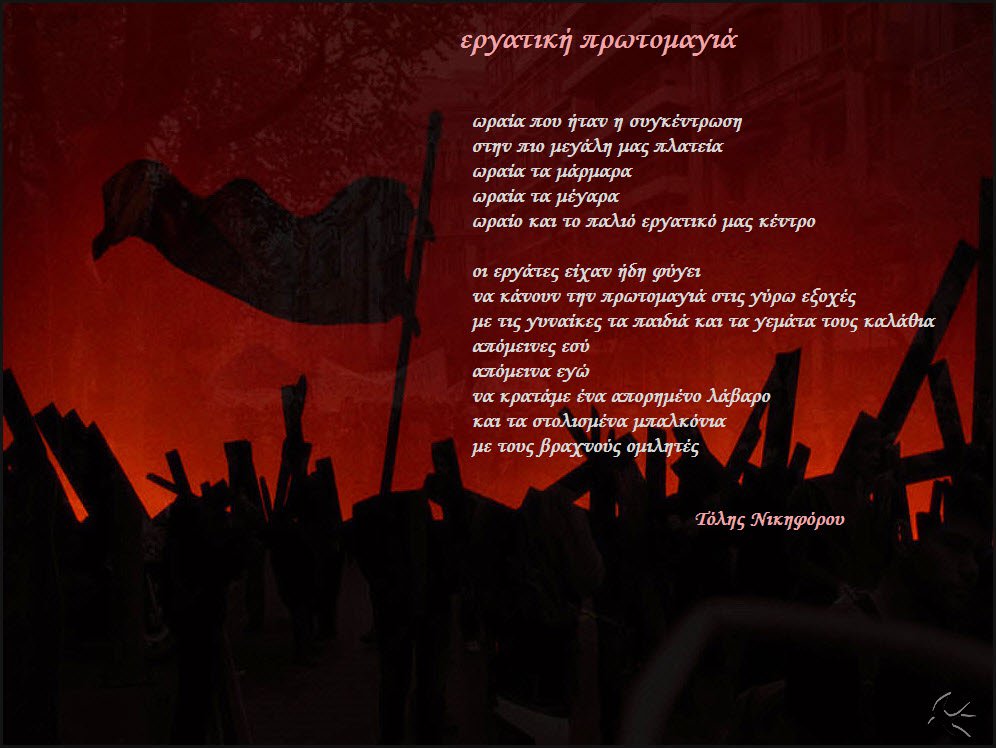 Τόλης Νικηφόρου, Εργατική Πρωτομαγιά Posted by Το κόσκινο on May 1, 2014 Share this: Share on X (Opens in new window) X Share on Facebook (Opens in new window) Facebook Like Loading... Related