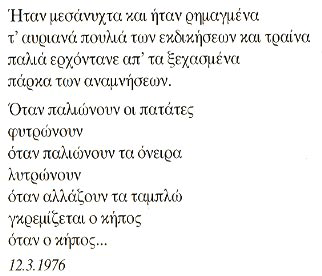 Θωμάς Γκόρπας, Ποιήματα Posted by Το κόσκινο on June 3, 2014 Share this: Click to share on X (Opens in new window) X Click to share on Facebook (Opens in new window) Facebook Like Loading... Related
