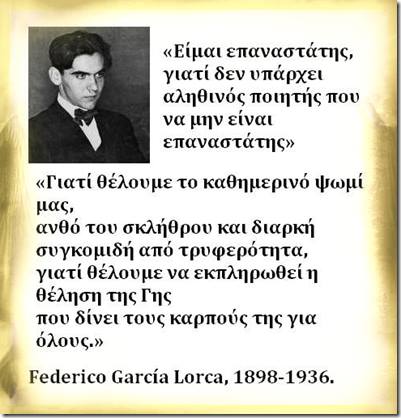 Σήμερα 18 Αυγούστου 2014 συμπληρώνονται 78 χρόνια από τη δολοφονία του Φεντερίκο Γκαρθία Λόρκα.