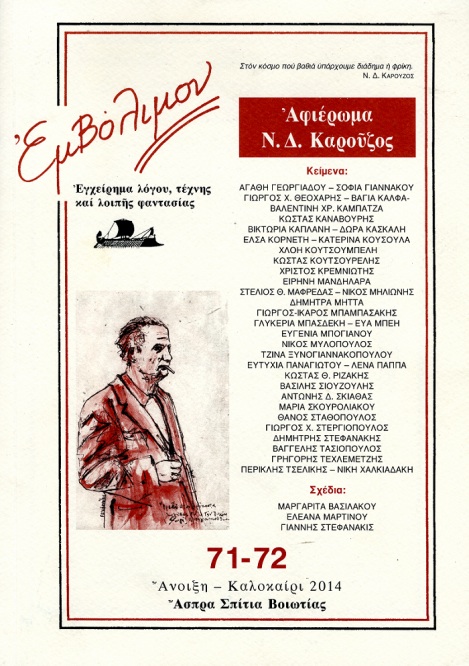 Στον ποιητή Νίκο Καρούζο, 24 χρόνια μετά την αναχώρησή του “για το μηδέν που θάλλει”, είναι αφιερωμένο το τελευταίο διπλό, τεύχος του περιοδικού Εμβόλιμον, ενός “εγχειρήματος λόγου, τέχνης και λοιπής φαντασίας”, όπως αυτοχαρακτηρίζεται στον υπότιτλό του. Ένα εγχείρημα που, ορμώμενο από τις δύσκολες συνθήκες μιας περιφερειακής πόλης, τα Άσπρα Σπίτια Βοιωτίας, όπου και εκδίδεται, συνεισφέρει στην όλη νεοελληνική λογοτεχνία, μια συνεισφορά που αναγνωρίζεται όχι μονάχα από τους κύκλους των ενδιαφερομένων αλλά και από το ίδιο το υπουργείο Πολιτισμού, που φέτος τίμησε το Εμβόλιμον, μαζί με την Παρέμβαση της Κοζάνης, με ένα από τα ετήσια Κρατικά Βραβεία. Στο πολυσέλιδο αφιέρωμα στον Νίκο Καρούζο, συνεισφέρουν γνωστοί λογοτέχνες και κριτικοί, ξαναδιαβάζοντας την ποίησή του, μελετώντας την κριτική υποδοχή του, καταθέτοντας αναμνήσεις, ενθυμούμενοι τις συνεντεύξεις του ή τον τρόπο με τον οποίο τους επηρέασε.