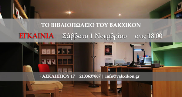 Εγκαίνια Βιβλιοπωλείου Βακχικόν Posted by Το κόσκινο on October 31, 2014 Share this: Share on X (Opens in new window) X Share on Facebook (Opens in new window) Facebook Like Loading... Related