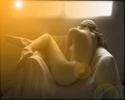 Με τα χέρια ενωμένα, σχεδόν γυμνή,