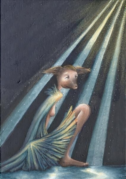 περιτριγυρισμένη από κοράκια, και πιο πίσω κυνηγοί.