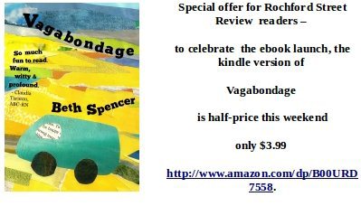 Vagabondage is Beth Spencer’s third book and her first in 18 years. It was originally published by UWAP in October 2014, and is now also available as an ebook. The paperback is available from selected bookshops, from UWAP (http://uwap.uwa.edu.au/products/vagabondage), or direct from Beth at her website. For RSP readers – to celebrate the ebook launch, the kindle version of Vagabondage is half-price this weekend — $3.99 from http://www.amazon.com/dp/B00URD7558. An ePub version is available for $3.99 at https://store.kobobooks.com/en-US/ebook/vagabondage-1, and PDF on request. Find out more at http://www.bethspencer.com.
