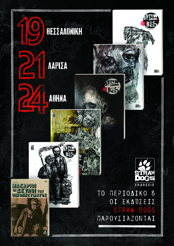 Το περιοδικό και οι εκδόσεις Θράκα παρουσιάζουν το Straw Dogs στην Λάρισα και στο καφέ kaveh kanes (Ασκληπιού 38).