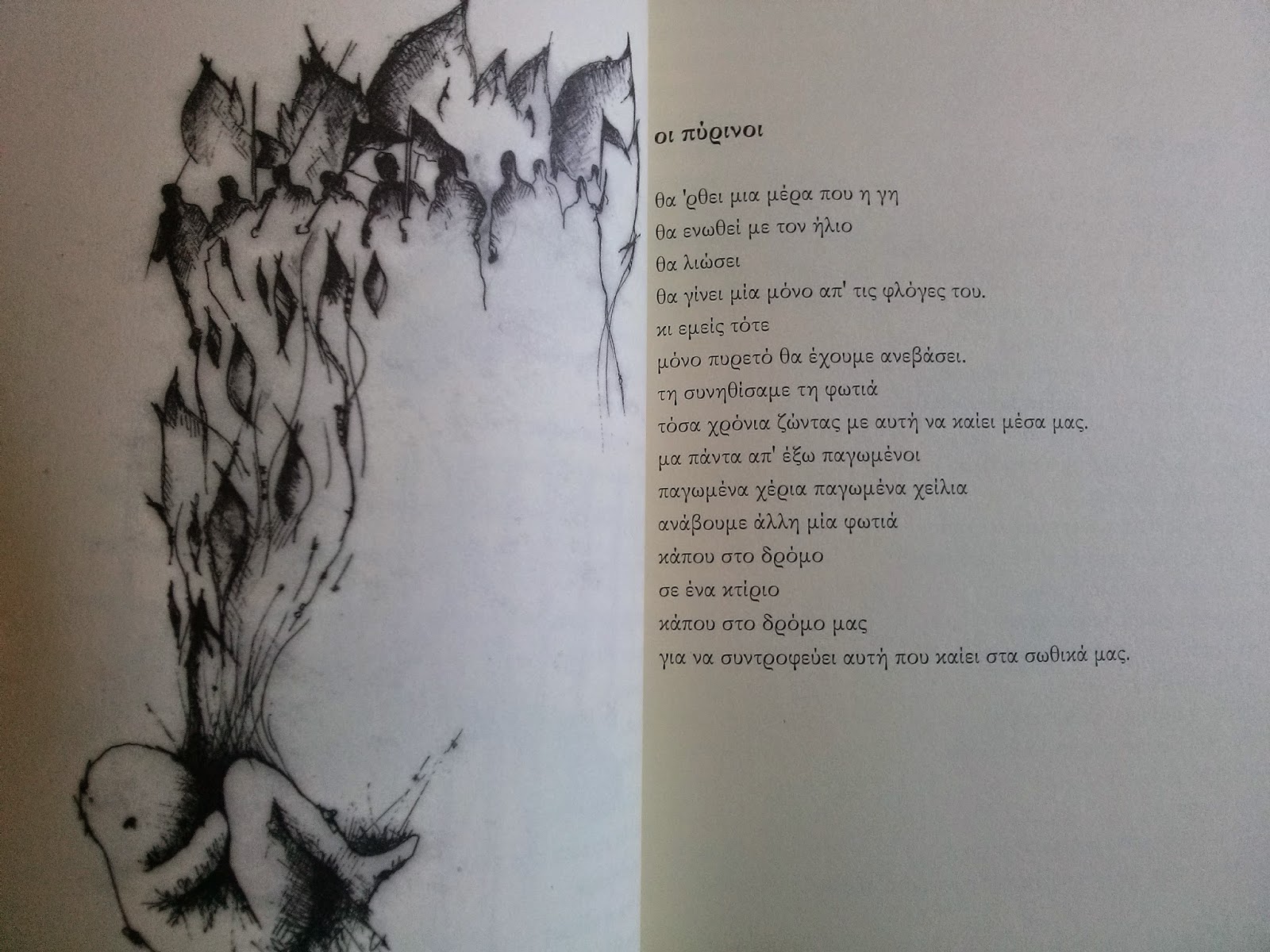 Λίνα Φι, οι πύρινοι Posted by Το κόσκινο on May 30, 2015 *Από τη συλλογή “δημιουργικό μηδέν”, εκδόσεις προςποίηση, που περιέχει 19 ποιήματα της Λίνας Φι και 8 σχέδια της orgbalmaria Share this: Click to share on X (Opens in new window) X Click to share on Facebook (Opens in new window) Facebook Like Loading... Related