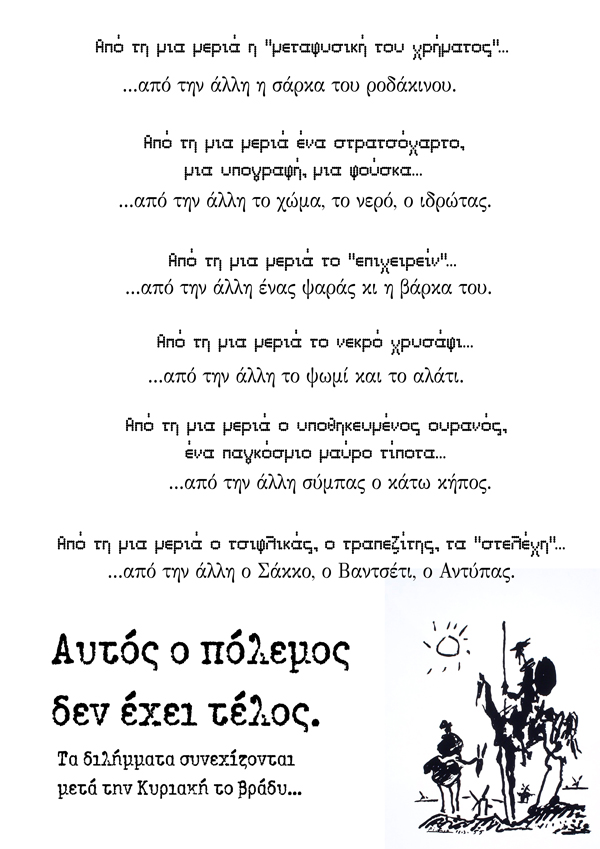 Γεράσιμος Λυκιαρδόπουλος, Αυτός ο πόλεμος δεν έχει τέλος Posted by Το κόσκινο on July 5, 2015 *Από το περιοδικό “Σημειώσεις”, τχ. 73. Share this: Share on X (Opens in new window) X Share on Facebook (Opens in new window) Facebook Like Loading... Related