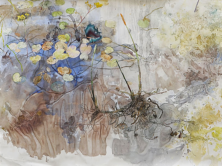 Watercolour, pencil, pen and ink, and sphagnum on 8 sheets (a-h)
