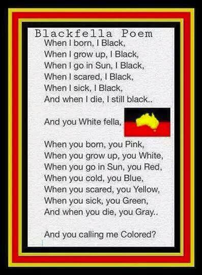 Blackfella poem Posted by Το κόσκινο on August 28, 2015 Share this: Share on X (Opens in new window) X Share on Facebook (Opens in new window) Facebook Like Loading... Related