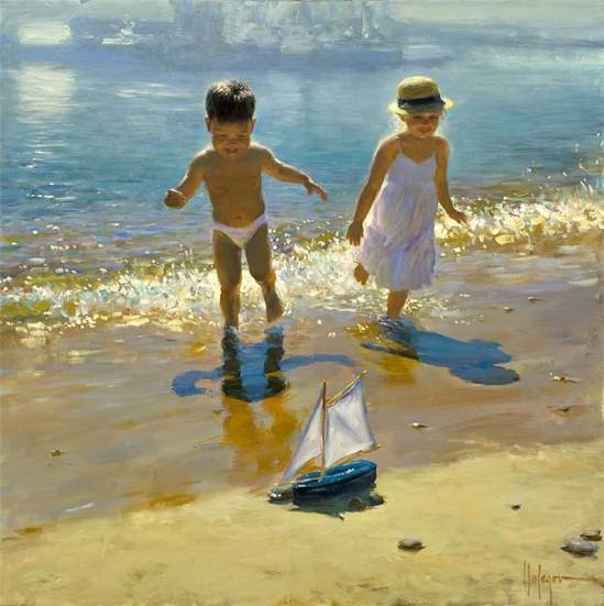 πίνακας: Βλαντιμίρ Βολέγκοβ – παιδιά στην παραλία