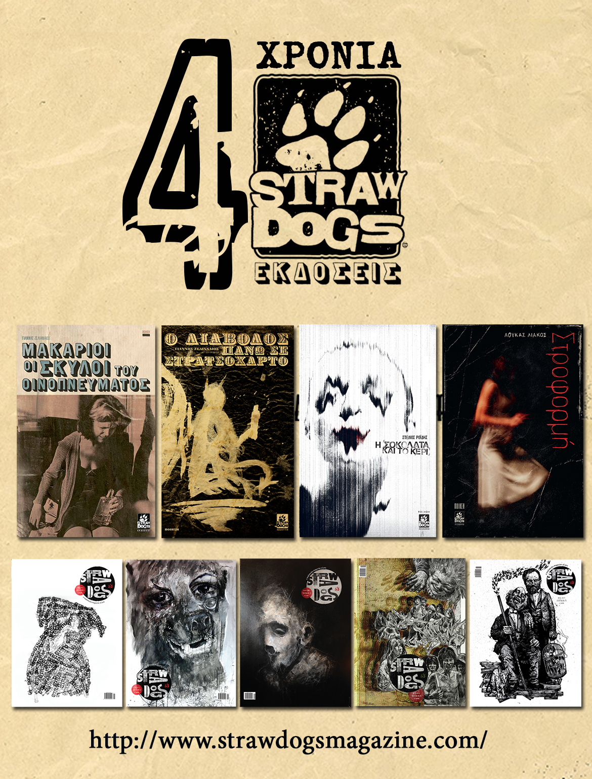 poster-4-xronia Published September 13, 2016 at 1170 × 1540 in Tέσσερα χρόνια Εκδόσεις Straw Dogs ← Previous
