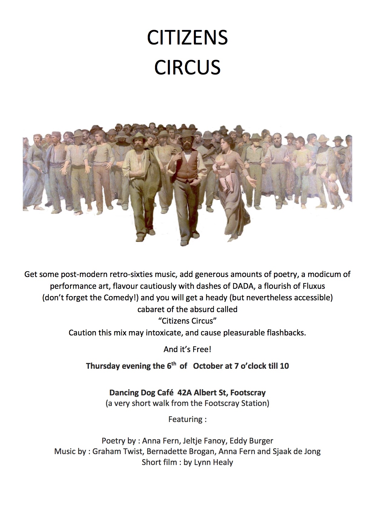 circus-pdf Published October 2, 2016 at 1240 × 1754 in CITIZENS CIRCUS this coming Thursday, 7-10pm, at the Dancing Dog Café, 42A Albert St., Footscray