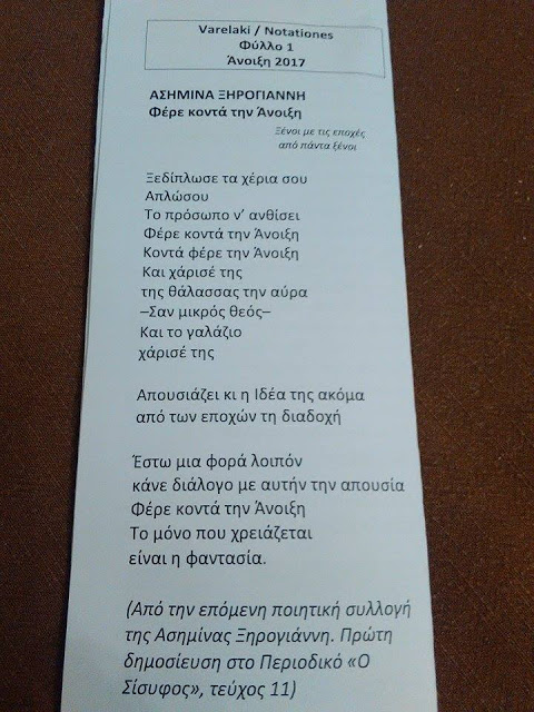 Βαρελάκι / Notationes No 1, Άνοιξη 2017 Posted by Το κόσκινο on March 23, 2017 *Περισσότερα στο http://varelaki.blogspot.com.au/2017/03/2017-varelaki.html Share this: Click to share on X (Opens in new window) X Click to share on Facebook (Opens in new window) Facebook Like Loading... Related