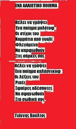 Γιάννης Βούλτος, Ένα αλλιώτικο ποίημα Posted by Το κόσκινο on September 14, 2017 Share this: Share on X (Opens in new window) X Share on Facebook (Opens in new window) Facebook Like Loading... Related