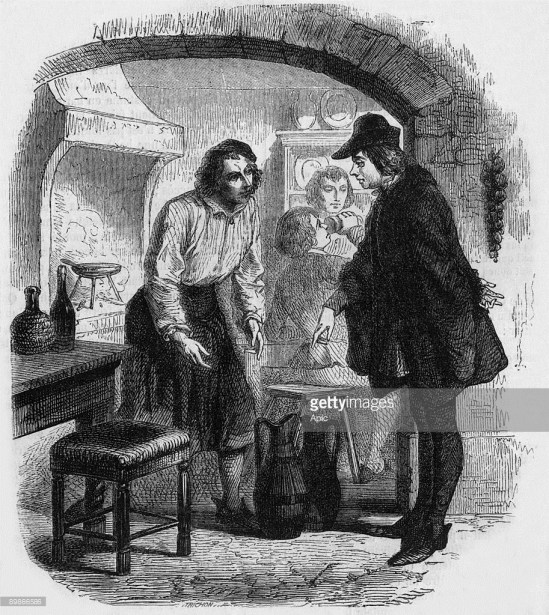 Villon escamotant un broc de vin dessin Gustave Janet illustration extraite du livre “Musee de Familles” 1853 1954