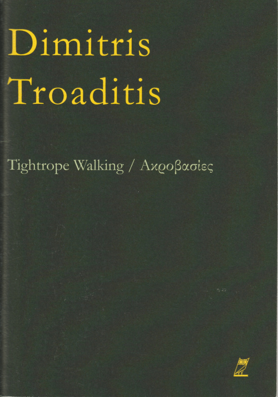 Ακροβασία, renderable in English as “tight-rope walking,” literally signifies walking on tiptoes. In his recently released poetry collection of same name, poet Dimitris Troaditis takes the reader upon a journey through a world poised precariously upon a knife-edge, one in which one steps through unguided, at their peril.