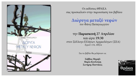 Φάνης Παπαγεωργίου, Διώρυγα μεταξύ νεφών, εκδ. Θράκα Posted by Το κόσκινο on April 15, 2018 Share this: Share on X (Opens in new window) X Share on Facebook (Opens in new window) Facebook Like Loading... Related