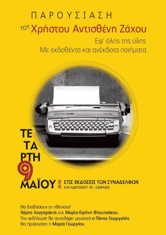 Παρουσίαση Χρήστου Αντισθένη Ζάχου Posted by Το κόσκινο on May 4, 2018 Share this: Share on X (Opens in new window) X Share on Facebook (Opens in new window) Facebook Like Loading... Related
