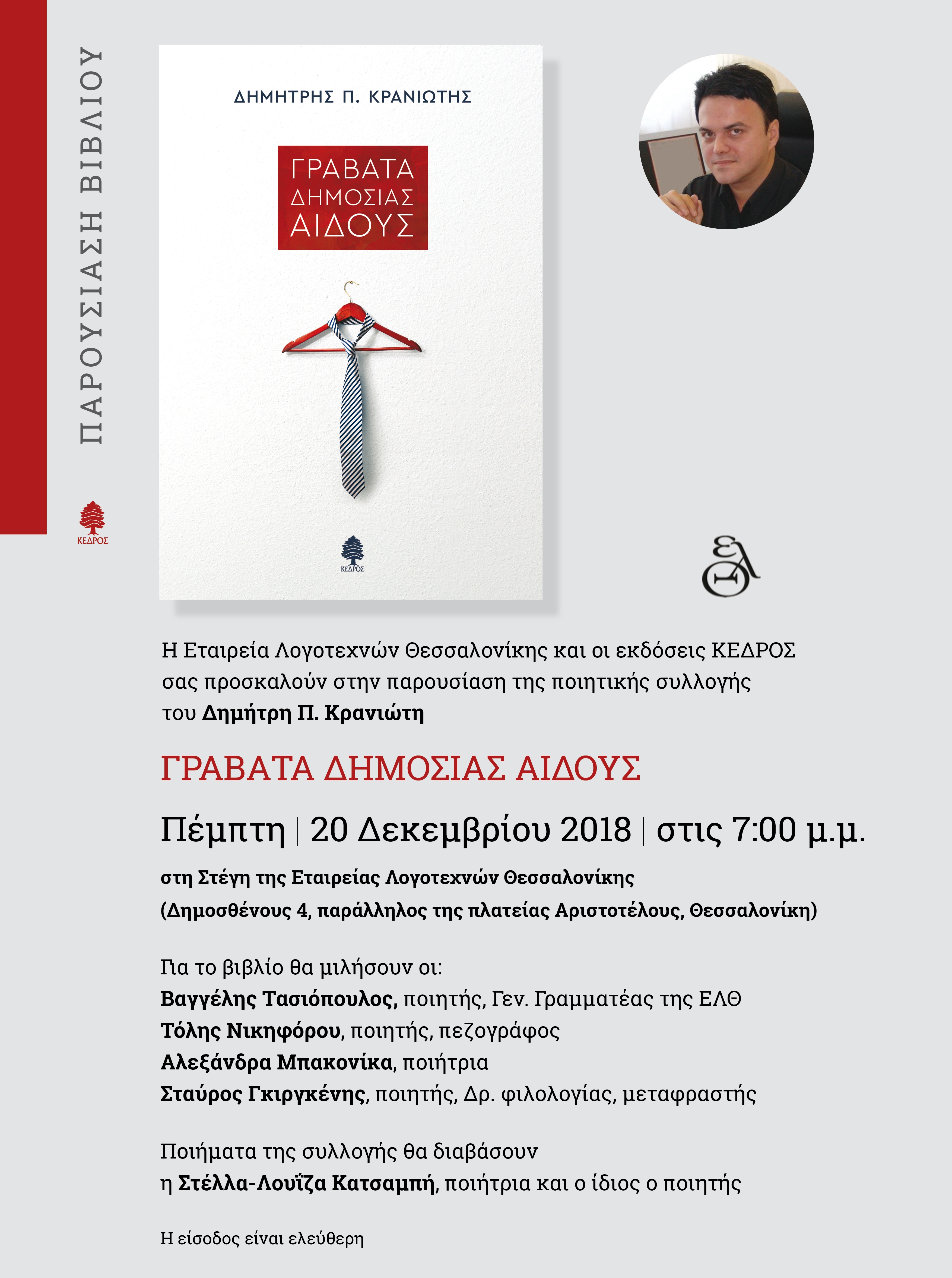 kraniotisposter Published December 14, 2018 at 3508 × 4706 in Παρουσίαση του νέου βιβλίου του Δημήτρη Π. Κρανιώτη στη Θεσσαλονίκη
