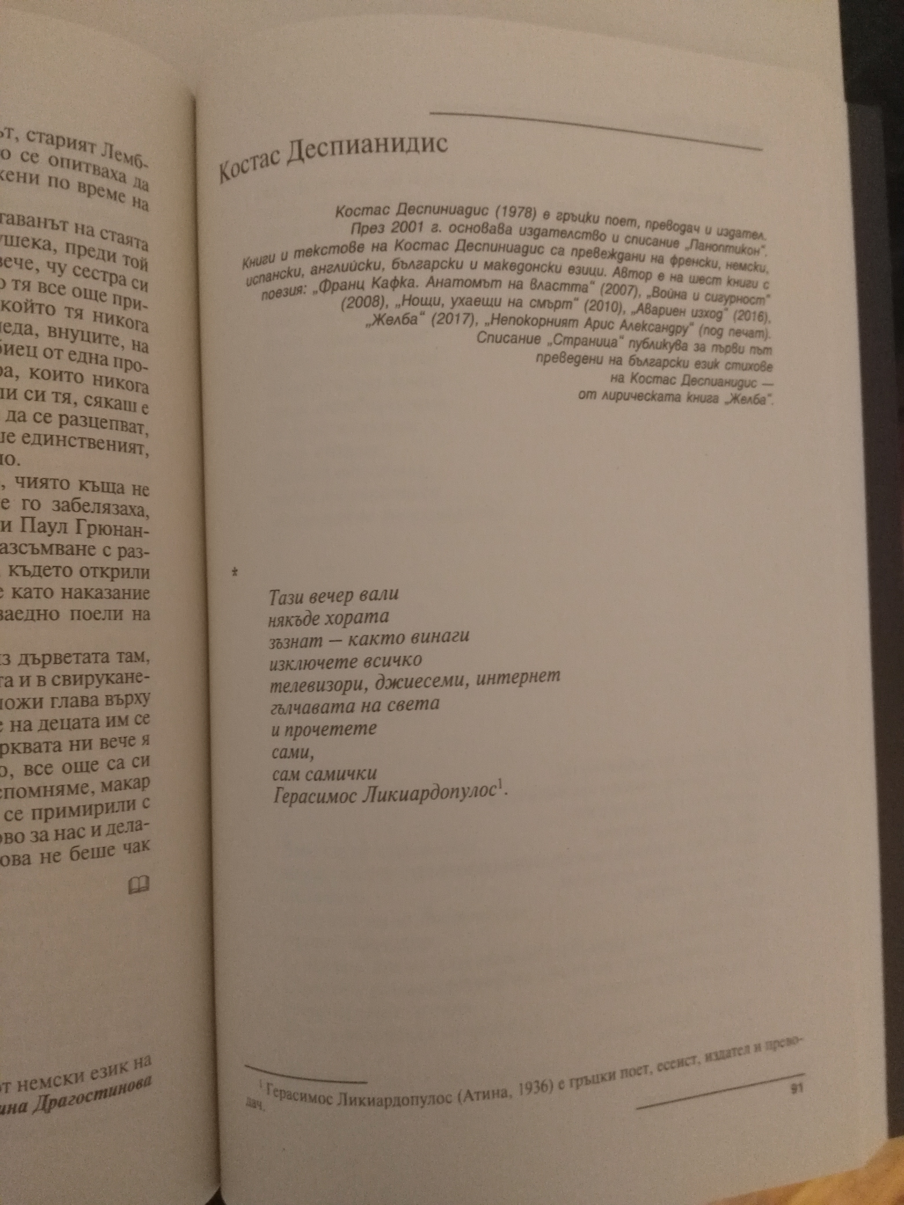 IMG_20190203_200114 Published February 27, 2019 at 3120 × 4160 in Ποιήματα του Κώστα Δεσποινιάδη στα βουλγάρικα ← Previous Next →