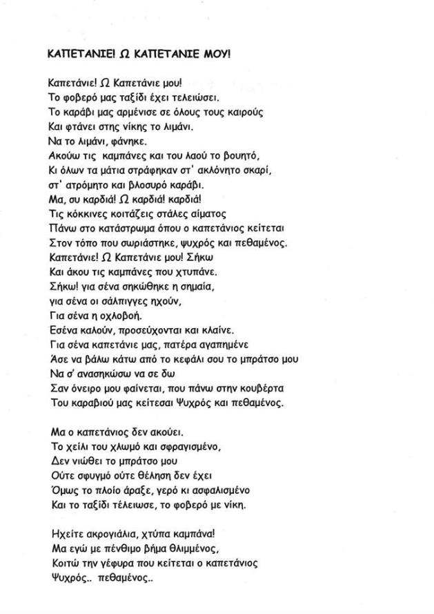 Walt Whitman, Καπετάνιε! Ω καπετάνιε μου!