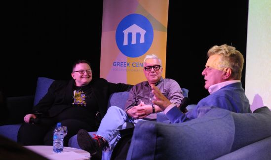 Από την έναρξη του Greek Writers Festival στη Μελβούρνη στις 31 Μάη 2019. Από αριστερά, οι Ελληνοαυστραλοί συγγραφείς Maria Katsonis και Dmetri Kakmi, συνομιλούν με τον επικεφαλής του Τομέα Ελληνικών του Πανεπιστημίου Σίδνεϊ, καθηγητή Βρασίδα Καραλή, στη συζήτηση με θέμα «Μεγαλώνοντας ως Έλληνες και ως Αμφισβητίες» (Growing up as Greeks and as Rebels), συζήτηση που άνοιξε τις εκδηλώσεις του Φεστιβάλ