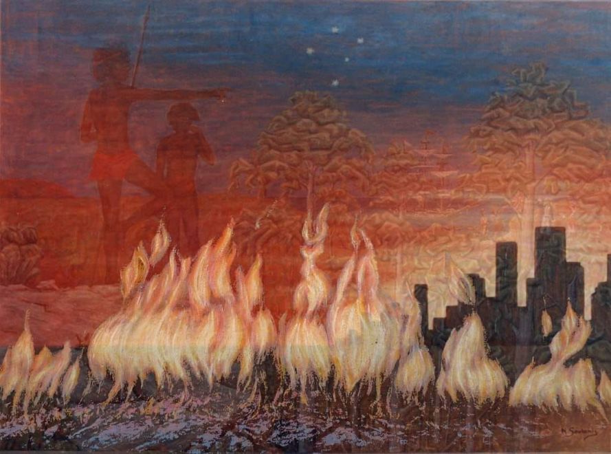 soulakis Published January 16, 2020 at 1080 × 802 in Ελληνοαυστραλοί καλλιτέχνες για τις φωτιές – Έρμα Βασιλείου, Ζώνη διακεκαυμένη – Με έναν ξαναδουλεμένο πίνακα του Νίκου Σουλάκη Ζωγραφική: Νίκος Σουλάκης