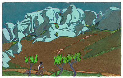 Νίκος Δραγούμης, Η οροσειρά Λεζ Αλπίν στο Σεν Ρεμύ της Προβηγκίας, γκουάς σε χαρτί, ιδιωτική συλλογή