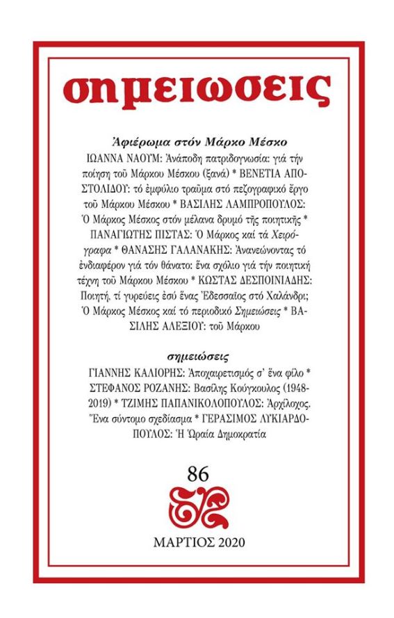 “Σημιώσεις” Νο 86 – Με αφιέρωμα στον Μάρκο Μέσκο