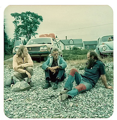 Ο George Oppen στη μέση με τον Taggart (αριστερά) και τον Ted Enslin, στο Sylvester’s Cove του Maine το 1975. Φώτο: Jennifer Taggart – Από εδώ: https://jacket2.org/article/singing-and-thinking.