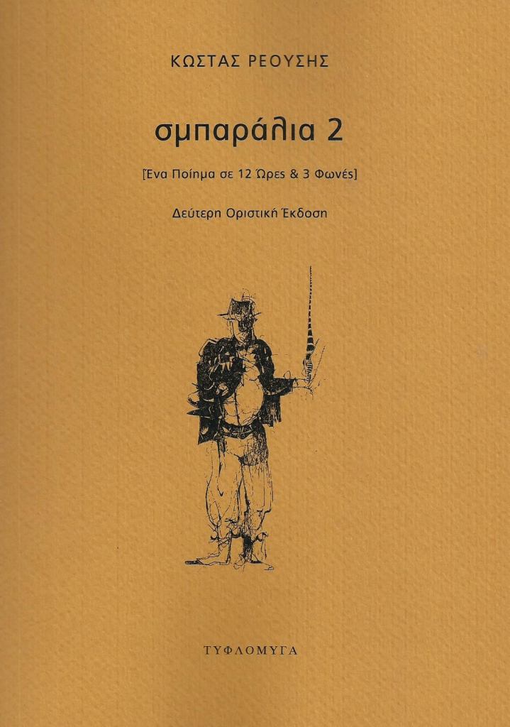 Δύο χρόνια μετά την «ατυχή» (αν και εξαντλημένη) πρώτη έκδοση, ο Κώστας Ρεούσης επανέρχεται με τη δεύτερη οριστική έκδοση του «Σμπαράλια 2» [Ένα Ποίημα σε 12 Ώρες & 3 Φωνές], σημειώνοντας δύο σημαντικές αλλαγές στη στιχοπλοκία, προσθέτοντας αλλαγμένο, ή καλύτερα παραλλαγμένο το βιογραφικό του σημείωμα (κάτι που ο ποιητής συνηθίζει να πράττει σ’ όλα τα μέχρι στιγμής βιβλία του) και μ’ ένα εμφατικό σχέδιο εξωφύλλου του Γιάννη Δημητράκη το οποίο δημοσιεύεται με την άδειά του.