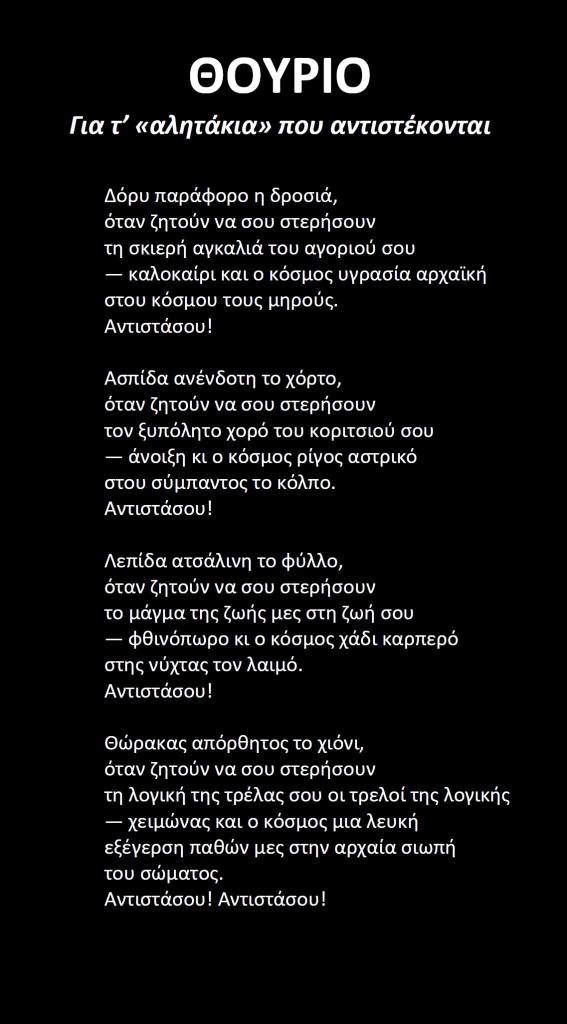 Γιώργος Μπλάνας, Θούριο για τ’ “αλητάκια” που αντιστέκονται Posted by Το κόσκινο on April 14, 2021 Share this: Share on X (Opens in new window) X Share on Facebook (Opens in new window) Facebook Like Loading... Related