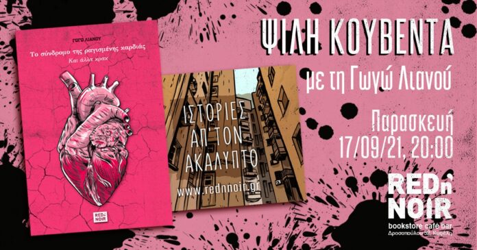 Την Παρασκευή 17 Σεπτεμβρίου και ώρα 19:45 θα βρίσκεται στο βιβλιοκαφέ red n’ noir (Δροσοπούλου 52, Κυψέλη) για να παρουσιάσει την δουλειά της ή στην πραγματικότητα για μερικά τζιν τόνικ και ψιλή κουβέντα για ποίηση.
