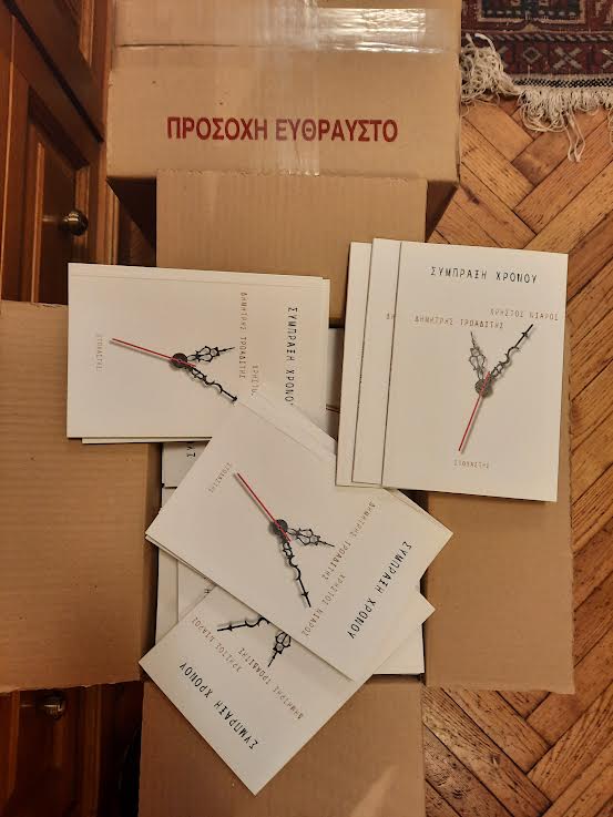 Γράφει το λεξικό για την ερμηνεία της λέξης «σύμπραξη»: α) συνεργασία και επίτευξη κοινού στόχου, β) ένωση ανθρώπων υπό κοινές ιδέες, ιδεολογίες, σκοπούς, γ) συμμαχία. Και οι τρεις έννοιες ταιριάζουν στο συντροφικό ποιητικό εγχείρημα του Χρήστου Νιάρου και του Δημήτρη Τρωαδίτη, που ένωσαν σε ένα χαρμάνι, για την ακρίβεια σε ένα λιτό βιβλίο των εκδόσεων Στοχαστής, τις ποιητικές φωνές και ευαισθησίες τους. Ποιος είναι, εντέλει, ο κοινός τους στόχος; Και εναντίον τίνος συμμαχούν; Την απάντηση μάς τη δίνει η δεύτερη λέξη του τίτλου της συλλογής τους: «Σύμπραξη χρόνου», καθώς και το εξώφυλλο του βιβλίου, όπου φιγουράρουν οι δείκτες ενός αόρατου ρολογιού: μαύροι και κομψά διακοσμημένοι ο κοντός δείκτης (της ώρας), και ο λεπτοδείκτης (των λεπτών), κόκκινος, απέριττος και δραματικός ο δείκτης των δευτερολέπτων. Οι δυο ποιητές, λοιπόν, συμμαχούν ενάντια στον χρόνο, καθώς έτσι κι αλλιώς η τέχνη πάντα ενάντια στον χρόνο τίθεται, εξ ορισμού· στην ακινητοποίησή του στοχεύει, στην αθανασία. «Οι λεπτοδείκτες αμείλικτοι και η αγάπη άφαντη», γράφει ο Τρωαδίτης στο εισαγωγικό ποίημά του. Για «ειρωνεία του χρόνου» κάνει λόγο ο Νιάρος. Όμως δεν επαναπαύονται.