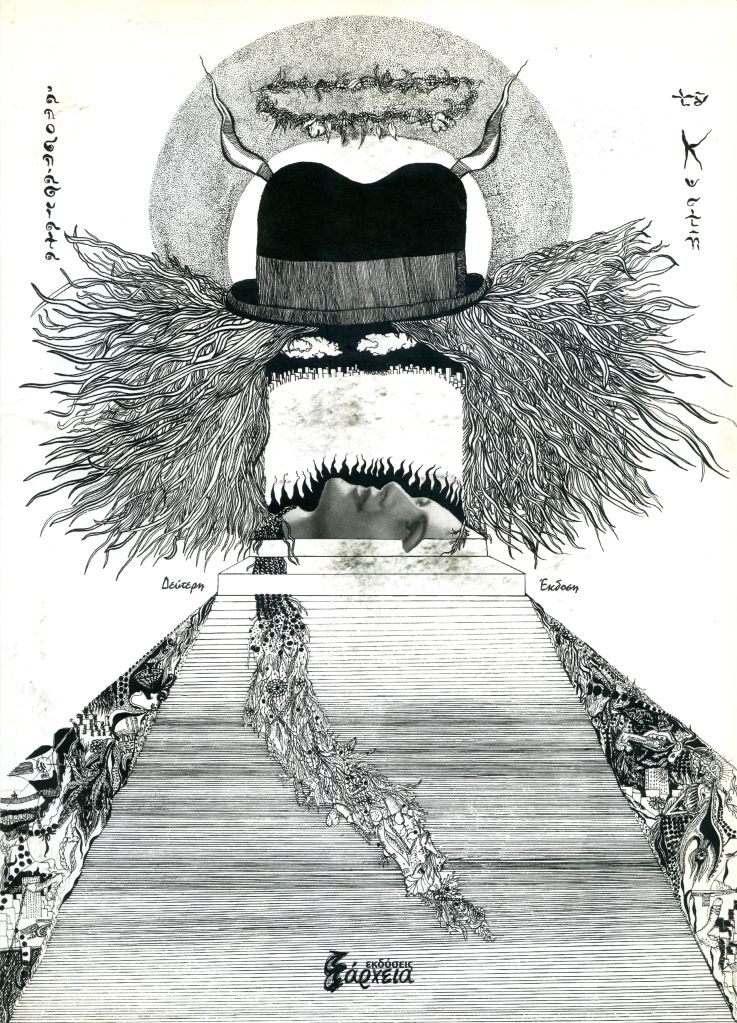 Με μεγάλη χαρά, παρουσιάζω σήμερα, αυτό το βιβλίο του Κ ω σ τ ή, στο blog. Πρόσφατο, πολύτιμο απόκτημα, η δεύτερη έκδοση των αποσπασμάτων του απ’ την περίοδο 1967-1973, που κυκλοφόρησε το 2015 σε πιστό αντίγραφο του πρωτότυπου. Τα πώς και τα γιατί, θα τα πληροφορηθείτε απ’ τις σχετικές παραπομπές. Έτσι κι εγώ, ως είθισται θ’ αρχίσω απ’ την αρχή… Γιατί η αλήθεια είναι ότι πριν ακόμη ξεκινήσω την ανάγνωση, παρατήρησα τις πολλές λεπτομέρειες του εξωφύλλου. Μια φωτογραφία, όπως αυτή που βλέπετε παραπάνω, δεν αρκεί παρά μόνο για να σας δώσει μια γενική ιδέα, ακόμη κι αν τη δείτε σε πλήρες μέγεθος. Όταν πάρετε όμως το βιβλίο στα χέρια σας, θα καταλάβετε πόσο λεπτοδουλεμένο είναι το συγκεκριμένο σχέδιο.