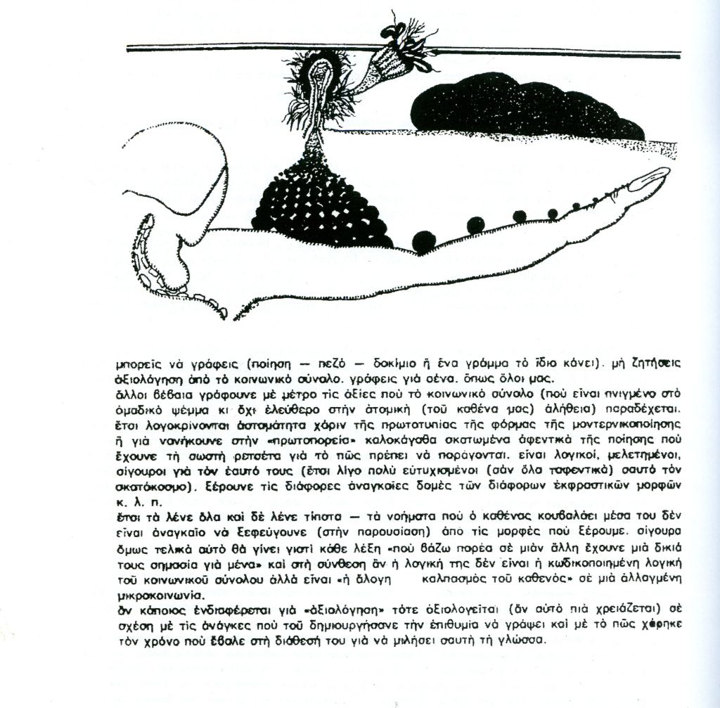 Και φυσικά, διαβάζοντας τα περιεχόμενά του, στάθηκα σε πολλά σημεία… Οι πολιτικές προκλήσεις και το κλίμα της ταραχώδους εκείνης εποχής αποτυπώνονται με την πρωτοποριακή Oπτική (και δε χρησιμοποιώ τυχαία τη λέξη) του γράφοντα, αλλά δημιουργούνται ταυτόχρονα και γόνιμοι, διαλεκτικοί, συνειρμοί με το σήμερα. Έτσι, το ιστορικό πλαίσιο, αν και σφραγίζει τα ποιήματα, δε λειτουργεί σε καμία περίπτωση ασφυκτικά, εγκιβωτίζοντάς τα στο παρελθόν, γι’ αυτό και μπορούμε λοιπόν να ταυτιστούμε με πάμπολλους στίχους του Κ ω σ τ ή, που αντανακλούν τόσο σύγχρονους προβληματισμούς σχετικά με τη θέση μας στον κόσμο, το ρόλο της τέχνης, της ποίησης, κ.α. Η δε «Καθημερινή Ηλέκτρα» του, θα μπορούσε αύριο ν’ ανέβει ως μονόλογος σε μια θεατρική σκηνή. Τη λάτρεψα κι αυτήν την ενότητα.