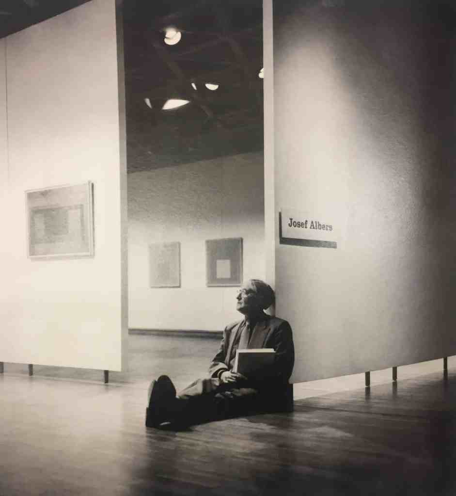 **Στη φωτογραφία: Ο Josef Albers κάθεται στο πάτωμα σε μια έκθεσή του το 1956.