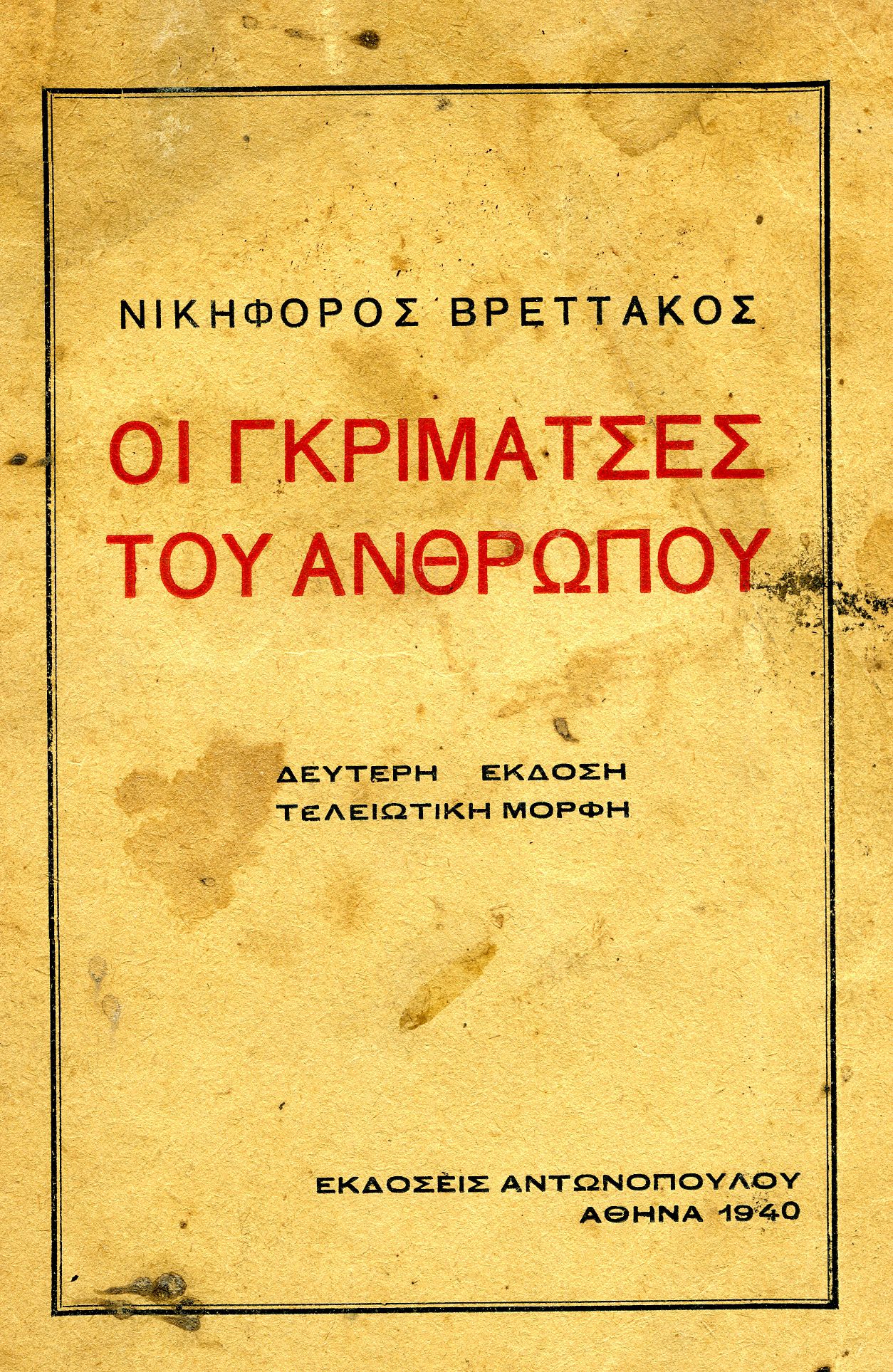 *Από τη συλλογή “Οι γκριμάτσες του ανθρώπου”, Εκδόσεις Αντωνόπουλου, Αθήνα 1940.