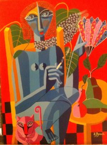 *Στις φωτογραφίες, από πάνω προς κάτω, οι πίνακες της Γιούλης Βρανά, “Καπνιστής με Γάτα”, “Άνοιξη” και “Εύα”.