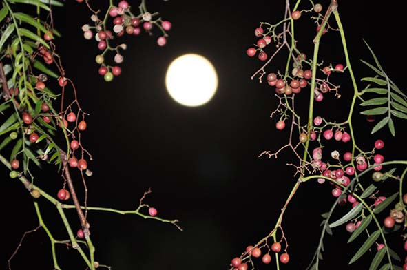 κρέμεται το φεγγάρι στο μαύρο ουρανό.
