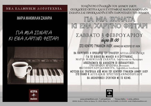 Παρουσίαση του βιβλίου “Για μια σονάτα κι ένα χάρτινο φεγγάρι” της Μαρίας ΜακΜίλαν-Ζαχαρία Posted by Το κόσκινο on February 1, 2024 Share this: Click to share on X (Opens in new window) X Click to share on Facebook (Opens in new window) Facebook Like Loading... Related