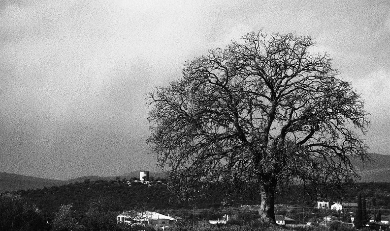 τα δέντρα στέκονται ασάλευτα στον ξαφνικό αέρα