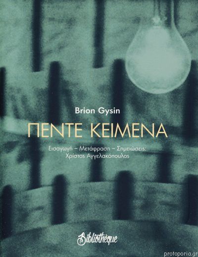 *Brion Gysin, Πέντε Κείμενα, μετάφραση Χρήστος Αγγελακόπουλος, εκδ. Bibliotheque 2019.